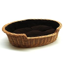 Prestige Wicker Dog Bed Basket with Cushion, Large, Dark