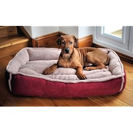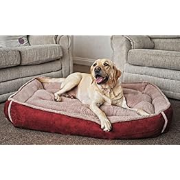Large Padded Luxury Fleece Dog Bed by Wolfybeds in Winterberry Red (36″ x 24″) washable covers, more colours available. Free shipping