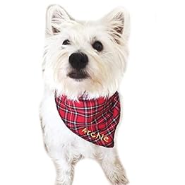 Spoilt Rotten Pets S2 Personalised Red Tartan Dog Bandana Custom Embroidered With Any Name Suitable For Shih-tzu…