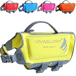 Vivaglory Skin-Friendly Neoprene Dog Life Vest with Superior Buoyancy and Rescue Handle, Yellow, Small