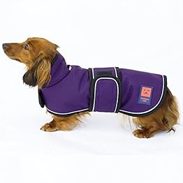 Ginger Ted Waterproof Dachshund Coat size 16″/41cm Purple – for short-legged breeds, warm fleecy lining, reflective piping, quick fastening, jacket raincoat style