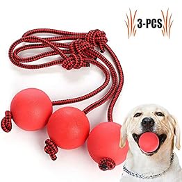 Legendog Dog Rope Ball, 3 Pcs Ball on a Rope Dog Toy Natural Elastic Solid Rubber Dogs Balls Chew Toys for Small Dogs