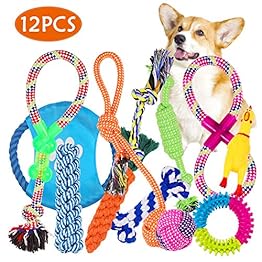 VACNITE Puppy Toys 12pcs Dog Chew Toys Teething Training Non-toxic Cotton Rope Boredom Anxiety Interactive Toy for Small…