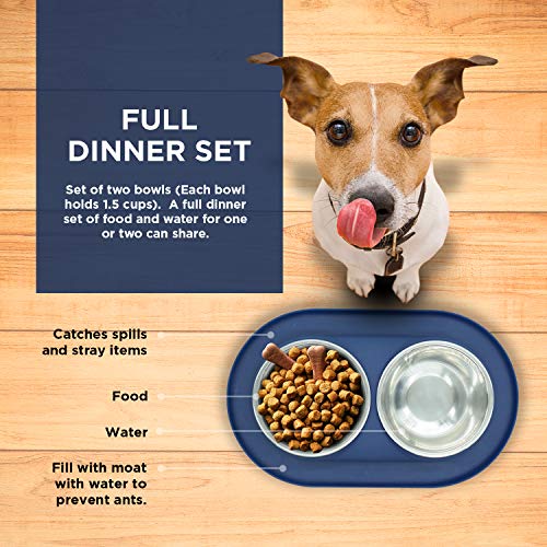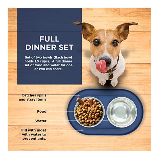 ✅TWO CAN SHARE or a full dinner set with food and water for one. Includes two premium 400ml stainless steel dog bowls, each measuring 14cm diameter x 4cm height.