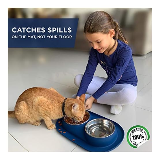 ✅NO MORE MESS with the silicone base featuring a raised outer lip to contain spills. The soft flexible silicone won’t scratch your floors either. Just be careful to remove the dog or cat bowls before picking up.