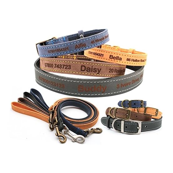 Personalised Ancol Timberwolf Leather Dog Collar and Matching Lead
