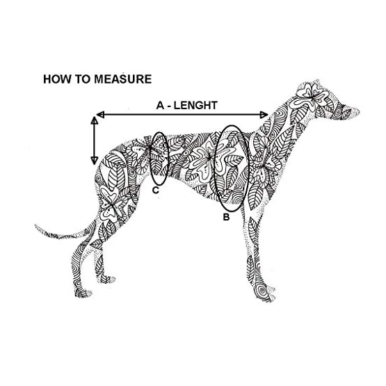 XXS 18”-20” PET BIGGER THAN ITALIAN GREYHOUND BUT SMALLER THAN SMALL WHIPPET UNDER 10kg for sure, XS 20”-22” SMALLER WHIPPET CA 10kg, S 22”-24” BIGGER WHIPPET CA 14kg, M 24”-26″ DOG BIGGER THAN GOOD WHIPPET SIZE, L 26”-28”VERY VERY SMALL UNUSUAL SMALL TINY GREYHOUND! XL 28″-30″, XXL 30”-32” over 30kg