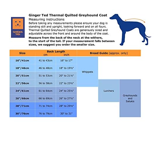 Measuring Instructions – Before taking any measurements please ensure your dog is standing still and upright, looking forward and on all fours. To order the correct size measure along the back of your dog from the withers to the start of the tail. Please then refer to the sizing chart and breed guideline which you will find in the images for this product.