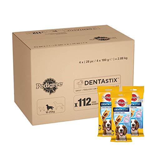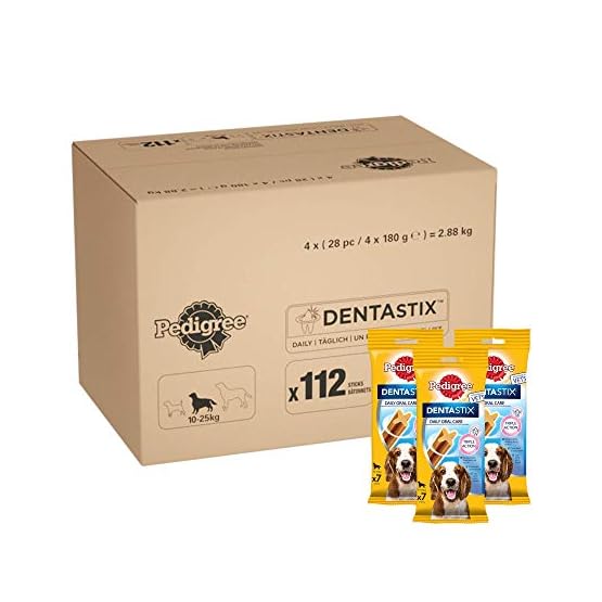 DentaStix Daily Oral Care dental chews for dogs are scientifically proven to reduce tartar build up by up to 80 Percent when fed daily; Pedigree daily dental sticks promote oral health