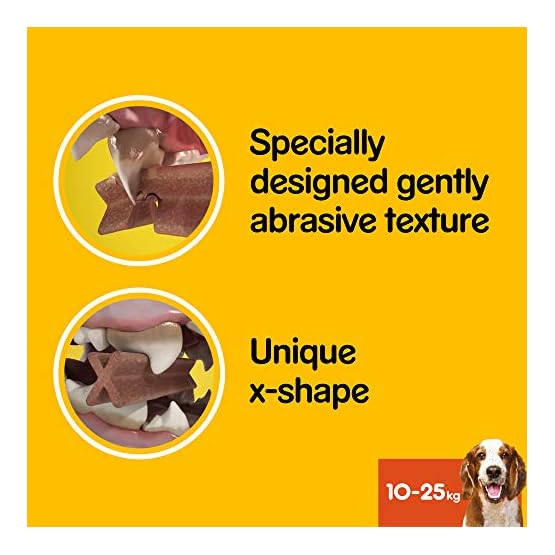 The Pedigree Dentastix Daily product has been designed to be chewed for long enough to be effective. These Pedigree treats for dogs have a gently abrasive texture combined with active ingredients that work with your dog’s saliva, help to reduce the build-up of plaque and tartar.
