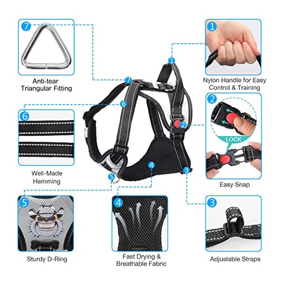 Easy to Wear & Adjust: This no pull dog harness is easy to wear and adjust, quick snap buckles ensures easy hassle-free on and off, fully adjustable straps at the chest and neck allow a custom fit for your fur friend, perfect for daily walking, running, jogging, hiking, training, outdoor fun time and more.