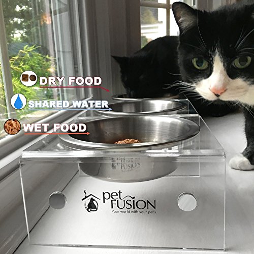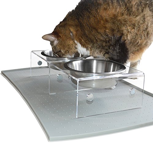 YOU SHOULD KNOW: (i) Each feeder = 8x8x4″ LxWxH with 3 U.S. Food Grade Stainless Steel bowls. 2 @ 24 oz / 2″ deep + 1 @ 13 oz / 1″ deep to combat whisker fatigue. (iii) Easy assembly. (iv) Anti-slip feet & bowl insets. (v) Replacement bowls available separately. (vi) 12 month warranty on any part that is broken due to manufacturer defect