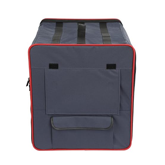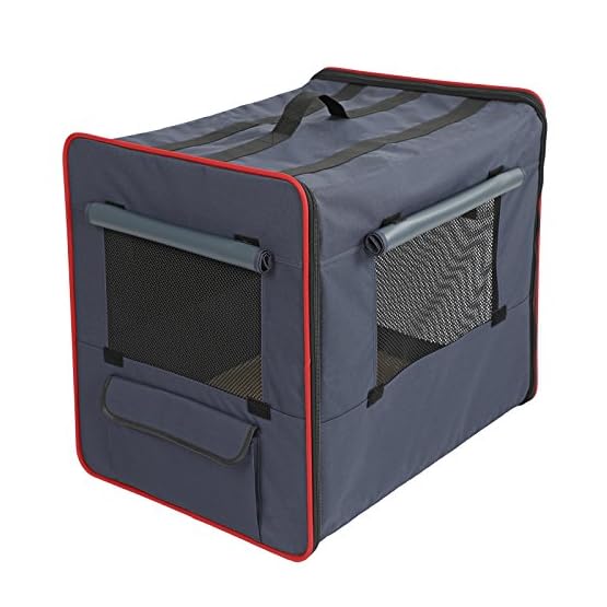 The dog crate sides and back feature a roll up vent flap with mesh windows is well ventilated. Your dear pets will have a comfortable environmental.