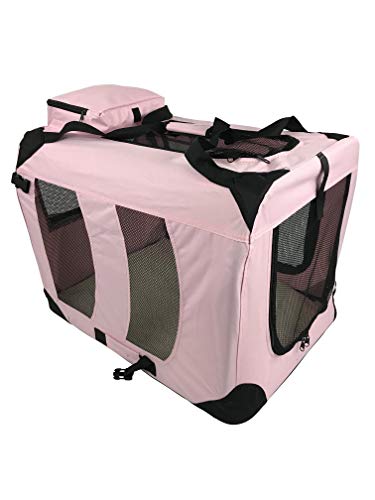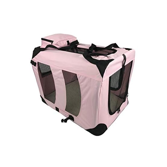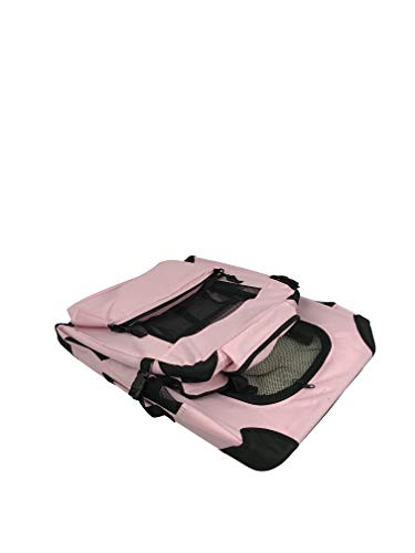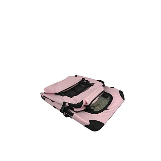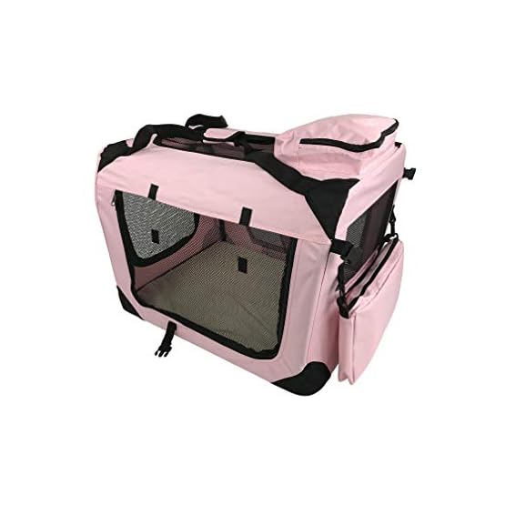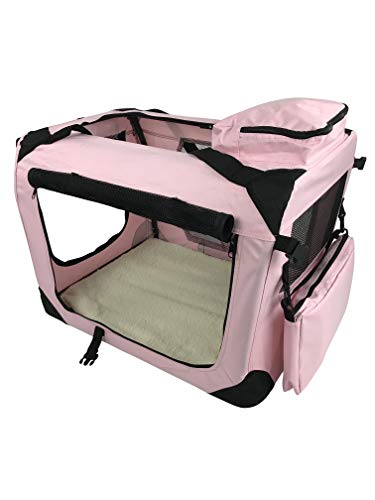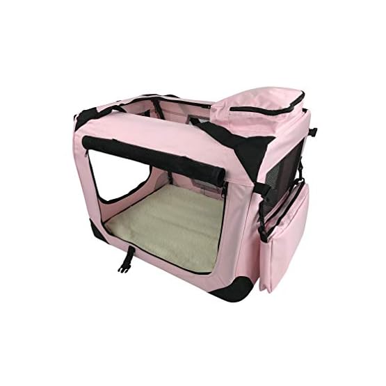 Pink in colour. Size: Medium. Folds down flat for easy transportation and storage when not in use. (Clips closed and has carry handle). Ideal for using at home, on holidays or on car journeys. Lightweight. Steel framed. Multiple mesh windows for ventilation. Top pocket with zip. Detachable side bag, ideal for storing all your pets essentials! Carry handles/straps. Soft faux fur lined at bottom for your pets comfort. Top zip opening for access. Side zip opening for access (with touch fasteners so it can be held open).