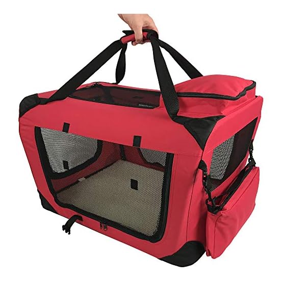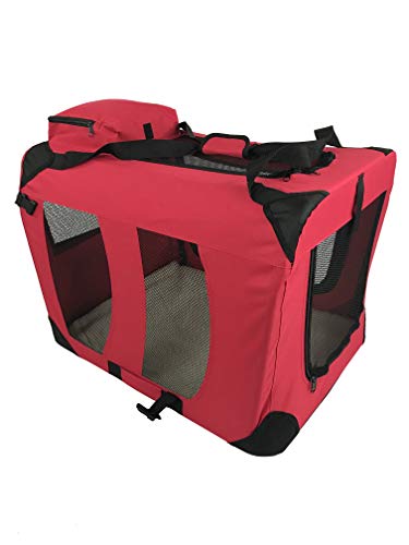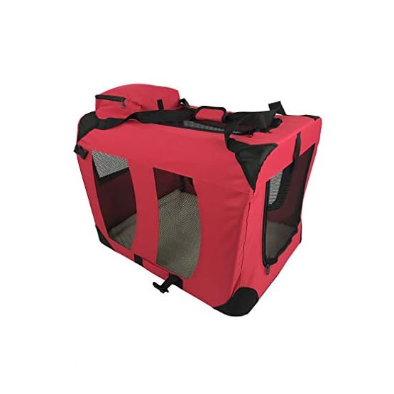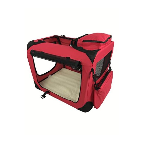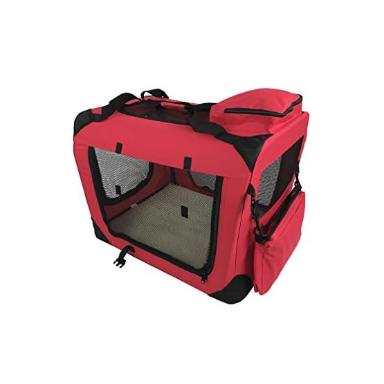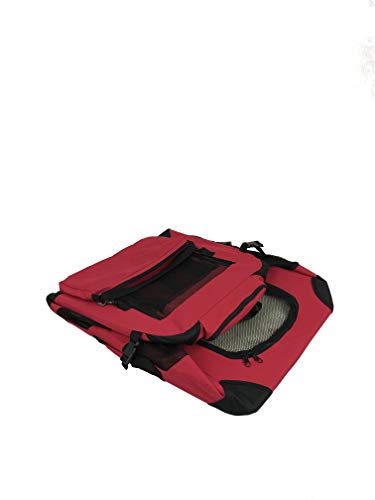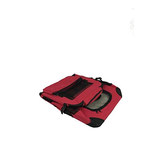 Red in colour. Size: Small. Folds down flat for easy transportation and storage when not in use. (Clips closed and has carry handle). Ideal for using at home, on holidays or on car journeys. Lightweight. Steel framed. Multiple mesh windows for ventilation. Top pocket with zip. Detachable side bag, ideal for storing all your pets essentials! Carry handles/straps. Soft faux fur lined at bottom for your pets comfort. Top zip opening for access. Side zip opening for access (with touch fasteners so it can be held open).