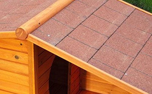 The generously oiled fir wood makes Dog Kennel Spike Special an excellent weather & winter proof home. The sheltered patio provides protection from rain and wind, while offering a nice and cool shadow on sunny days. Your dog can thus enjoy more fresh air during the summer. It’s the perfect 4-season dog shelter with a roof overhang and a bottom clearance (8.5 cm) to protect your dog from the wet ground while helping your kennel last longer. The roof is made from specially treated material for that extra weather proofing. An Additional Plus: Assemble this kennel easily with only a few screws.