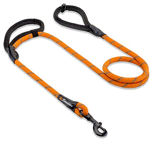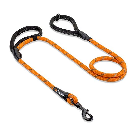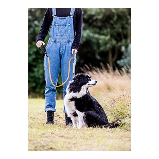 Our innovative orange coloured rope lead comes with two padded handles to keep your pooch close when you’re passing other dogs or walking on crowded city streets. The tubular webbed handles have an extra padding to give your hands and wrist more comfort and reduces chafing. It is very reliable and made from strong climbing rope that is 1.27cm thick in diameter, 1.5m long which makes it tough and rugged.