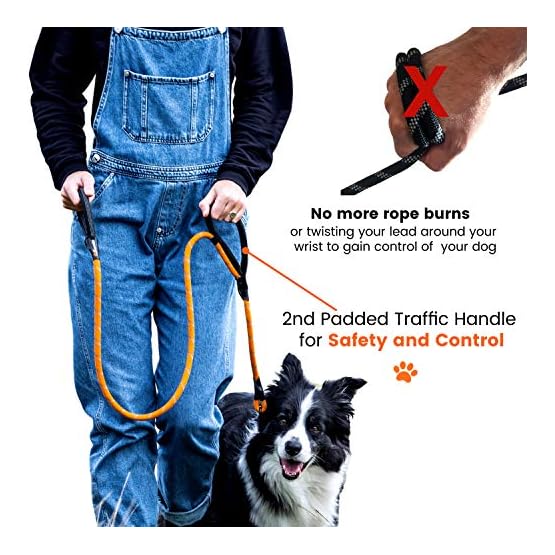 ERGONOMIC GRIP – Our innovative dog rope leads come with two tubular webbed and padded handles making it easier to grip without facing any strain or rope burn. It also makes it easier on your wrist and gives you greater control to guide your pup.
